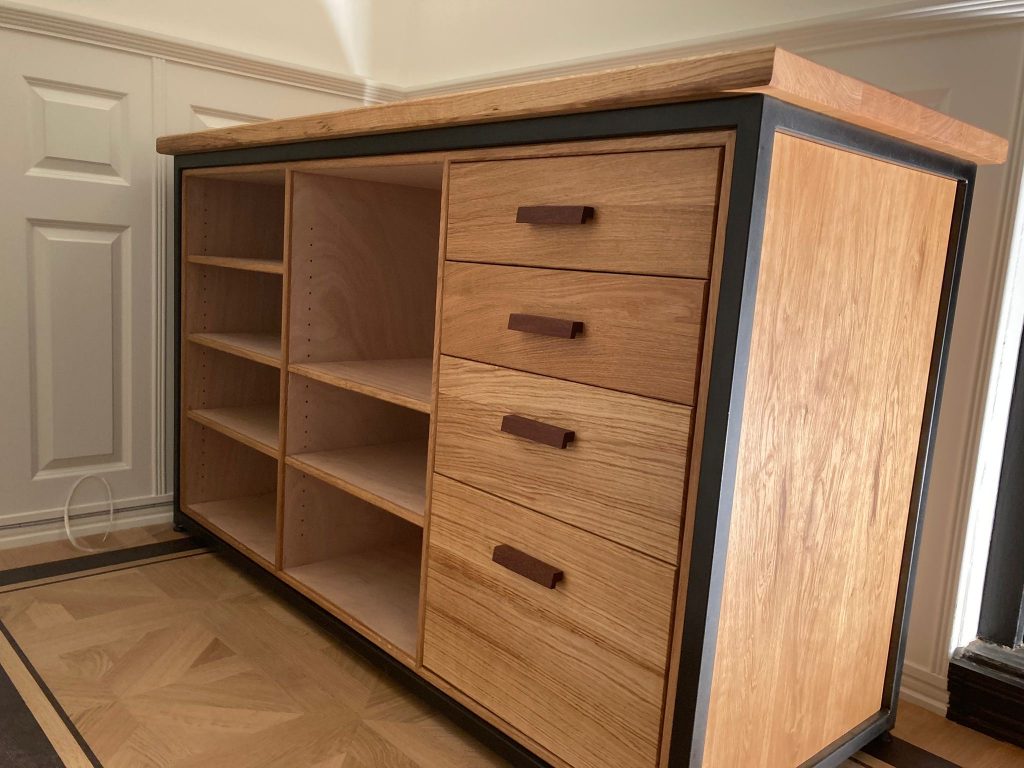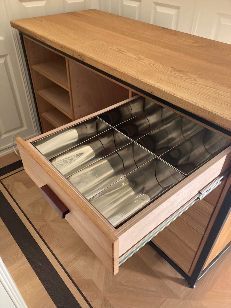 De kast zal gaan dienen voor de koffiemachine, bestek en servetten.