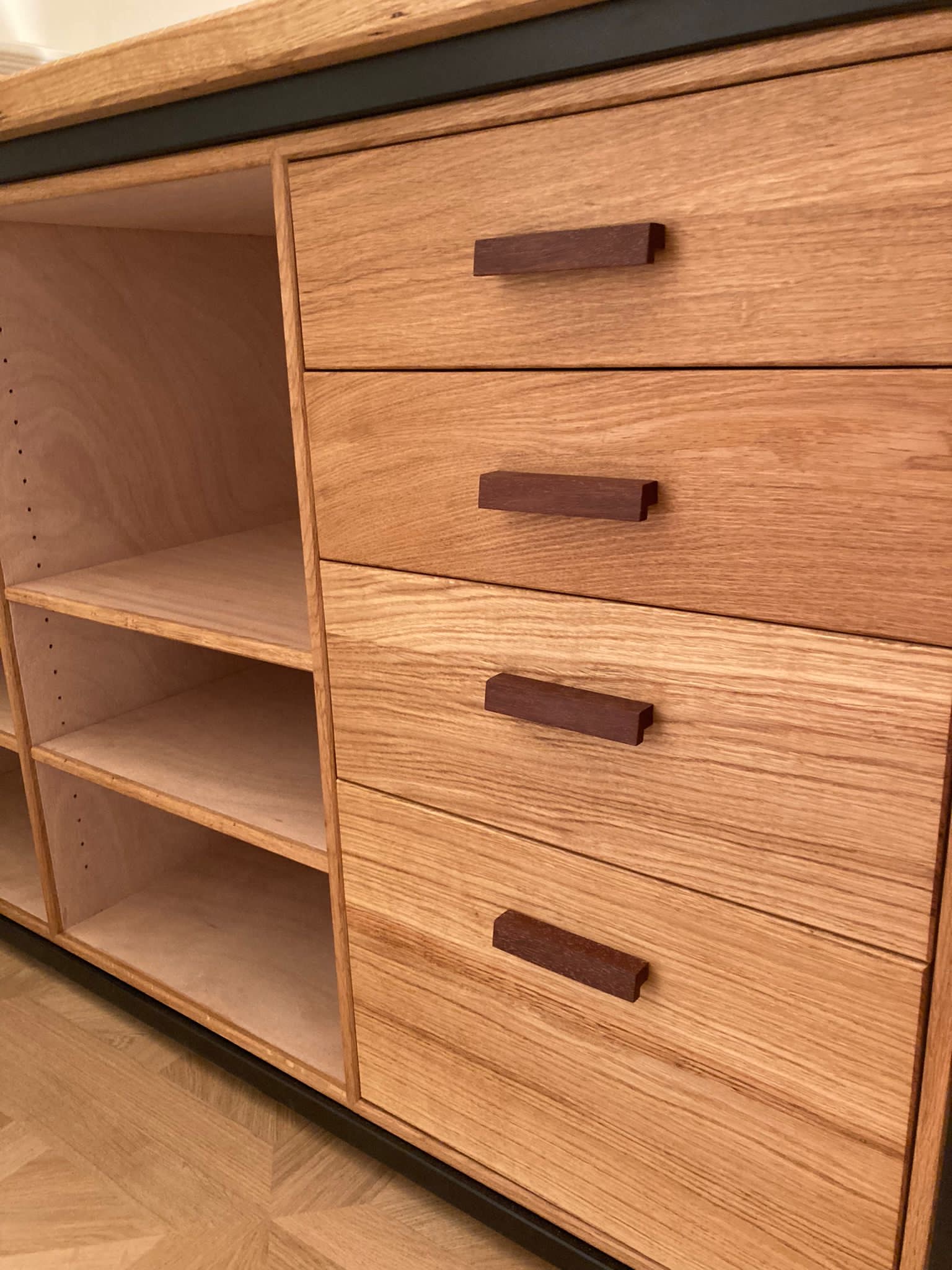 De kast zal gaan dienen voor de koffiemachine, bestek en servetten.