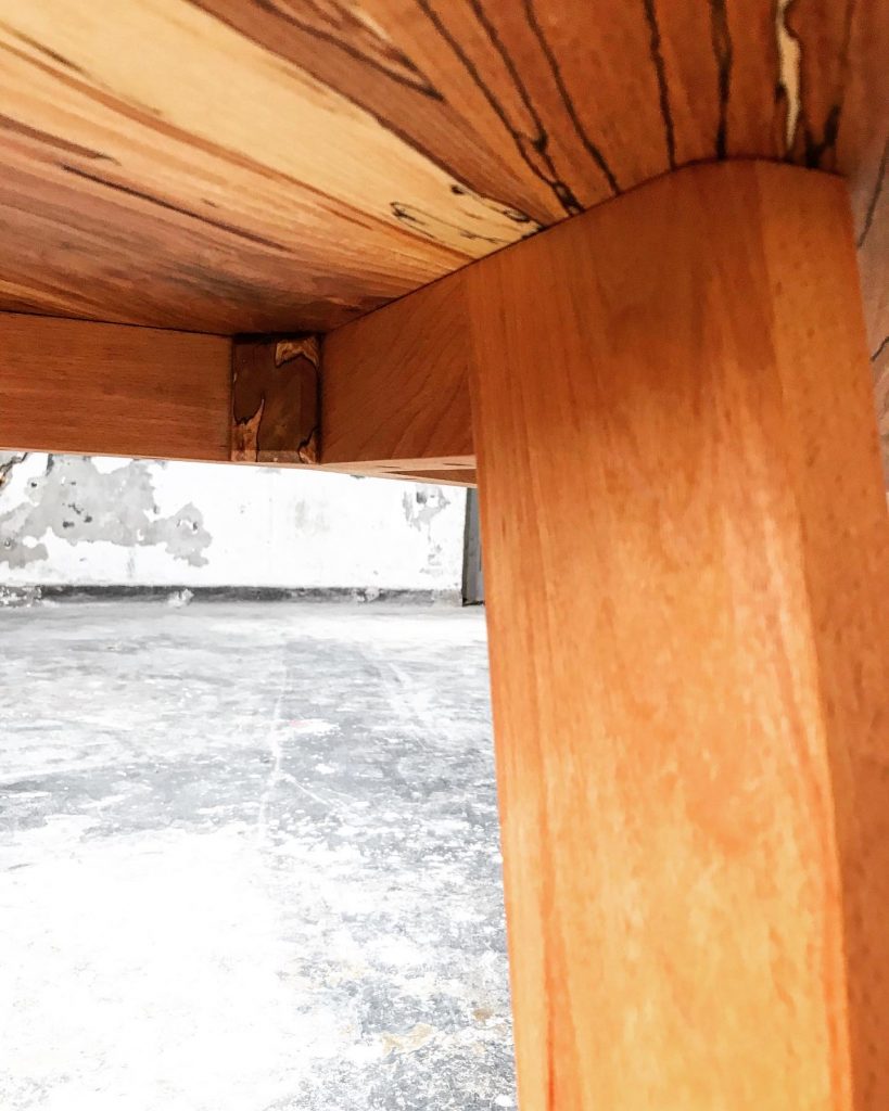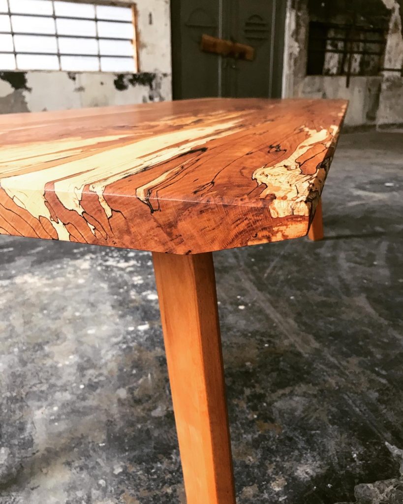 Deze eettafel van 250 cm lang is gemaakt van beuken met slaap. Slaap is een manier van de beukenboom om zich te beschermen tegen infecties. Hierdoor ontstaat er een schilderachtig patroon in het hout.